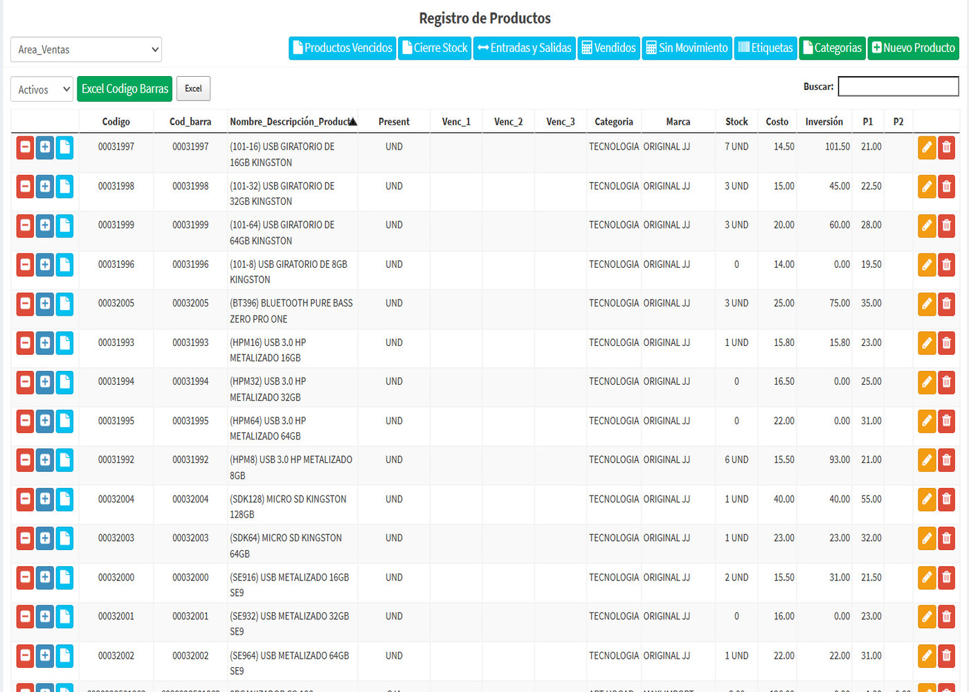 - Gestión eficiente de productos, organizando por categorías y movimientos.